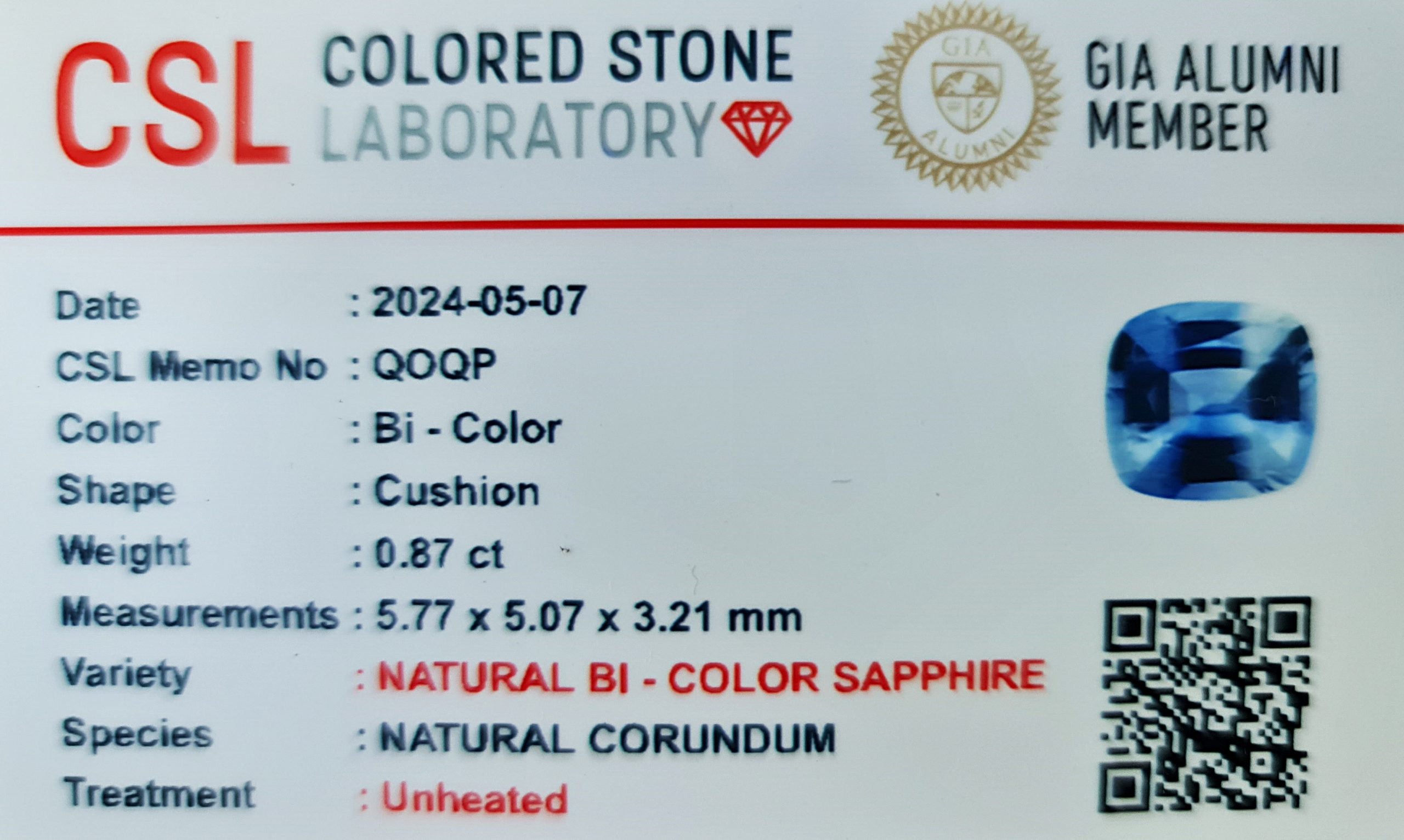 Every sapphire gemstone on our website is certified for quality and authenticity. This bi-color cushion cut sapphire comes with a report from GIA, ensuring its natural origins and quality. We are also certified by the National Gem and Jewellery Authority.