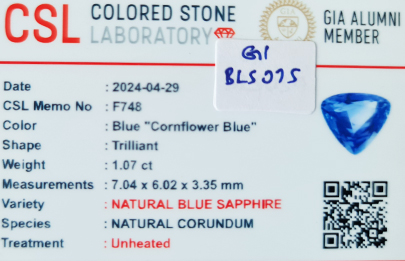 Add a touch of luxury to your life with this stunning 1.07-carat cornflower blue sapphire gemstone, a symbol of beauty and elegance.