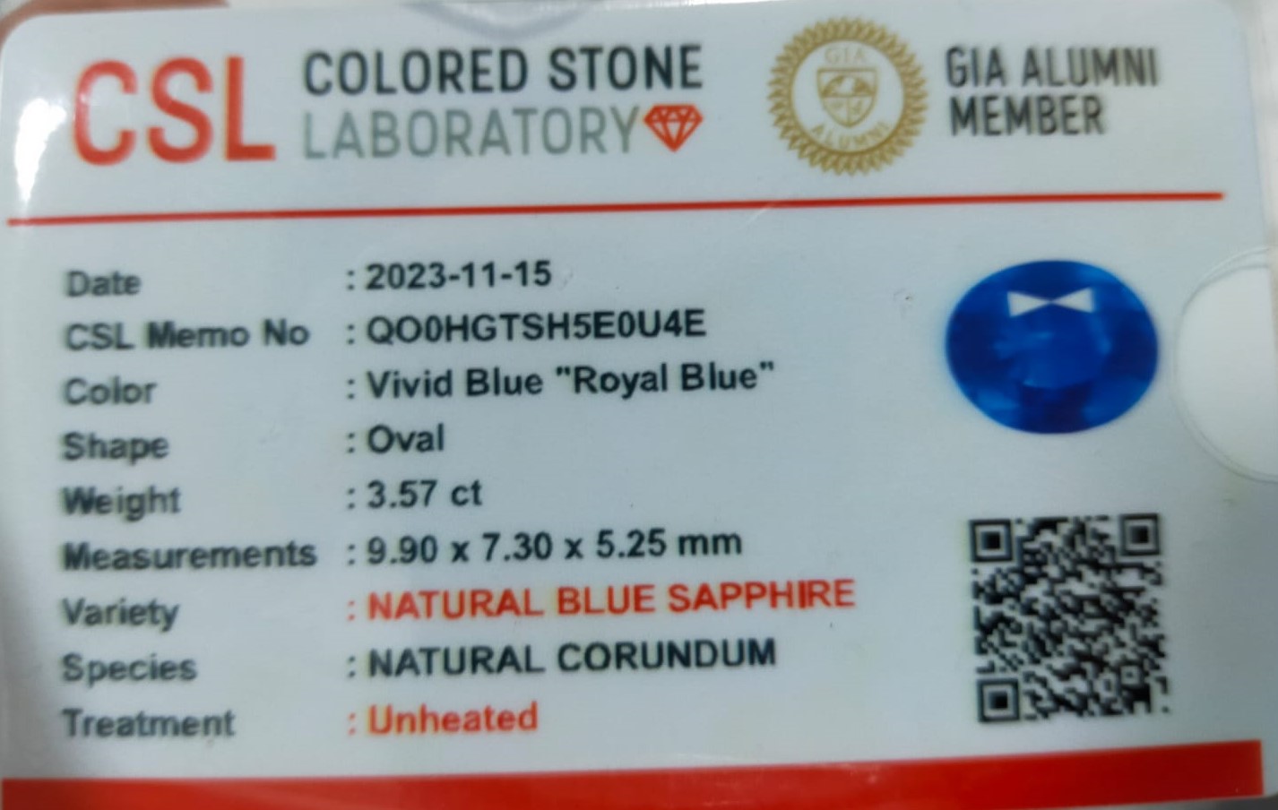 Indulge in the allure of luxury with our 3.57 carat Royal Blue Sapphire. This natural, unheated gemstone boasts a captivating deep blue hue, making it a rare treasure. Contact us for more pictures and videos to discover its unparalleled beauty.