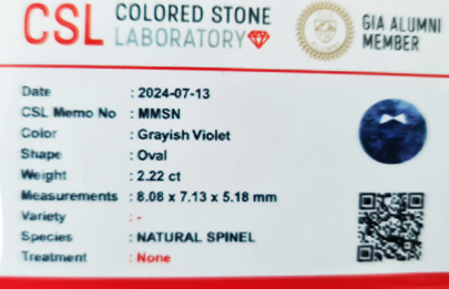 2.22 Carat Exquisite Grayish Violet Spinel Gemstone