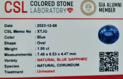 1.95 Carat Natural Blue Sapphire Gemstone | High-Quality Loose Sapphire Gemstones